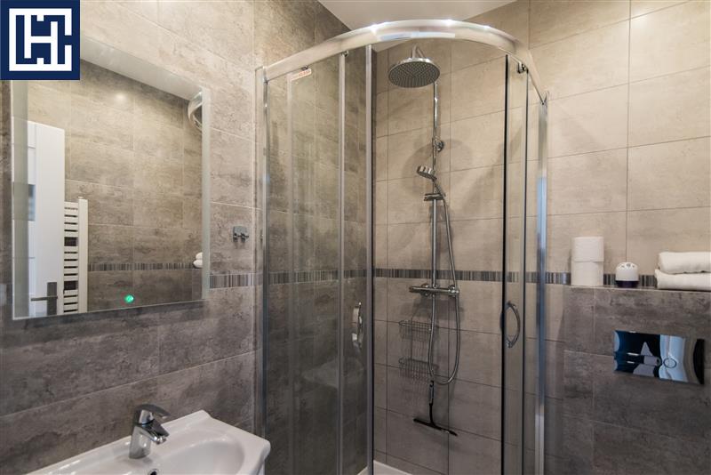 Lokal podzielony na 5 niezależnych apartamentów wynajmowanych całorocznie w systemie najmu krótkoterminowego, każdy z własną łazienką i aneksem kuchennym: